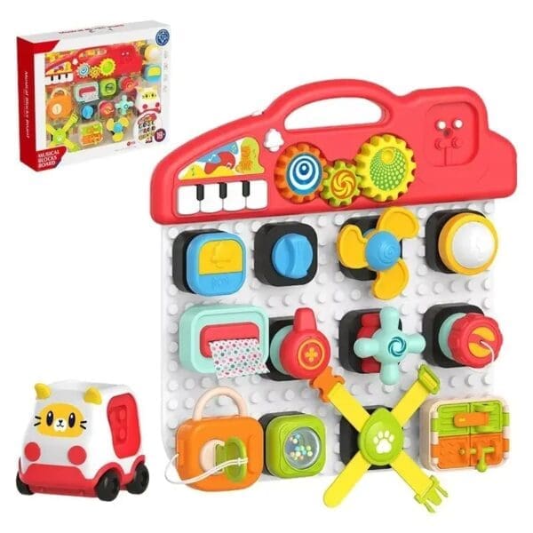• Multifunctional Educational Toy: Includes 15 different activity toys, such as a small car, 4 piano keys, and 10 different musical options. Designed to enhance hand-eye coordination, develop auditory and visual skills, and stimulate cognitive development.