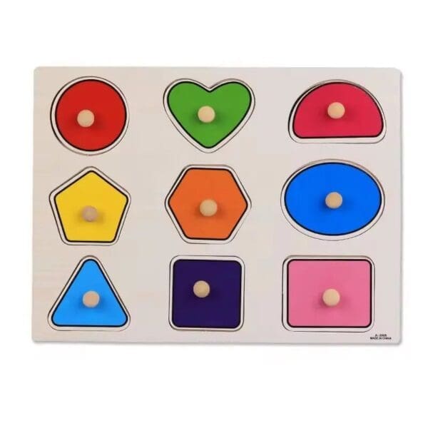 - Peg Puzzle Set: Wooden puzzles for toddlers 1-3 feature 9 peg wood geometric blocks in 7 colours. This is a great shape toys for toddlers for introducing shapes and colours and exercising hand-eye coordination.
